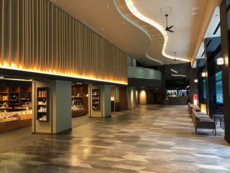 ただし、ロビーの特大ガラス入れ替え工事のための足場がロビーから見える状態です。